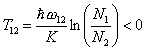 где Т — абсолютная температура вещества. Из (3) следует, что N2 < N1. Если нарушить равновесие системы, например, воздействовать на систему монохроматическим электромагнитным излучением, частота которого близка к частоте перехода между уровнями: ω21 = (E2 — E1)/ħ и отличается от частот других переходов, то можно получить состояние, при котором населённость верхнего уровня выше нижнего N2 > N1. Если условно применить формулу Больцмана к случаю такого неравновесного состояния, то по отношению к паре энергетических уровней E1 и E2 можно ввести О. т. по формуле: