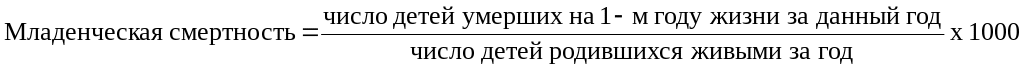 Младенческая смертность – смертность детей от момента рождения до достижения одного года рассчитывается на 1000 детей, родившихся живыми.