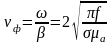 Например, для меди (Приложение 3) при частоте ЭМП 1МГц (0=300м) получаем: ==1,5104(1/м), vф=420 (м/с), =4,210-4(м), =67(мкм), vгр=0, Zc=3,710-4exp(-i/4) (Ом)