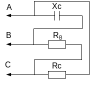 B колі струм 2A. Визначити: U, UA, UL UC , якщо cosϕ = 0.85, R = 25.5 Ом, Хс = 1000 Ом.
