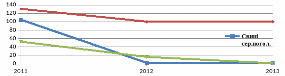 Отже, згідно графіку ми бачимо, що свині принесли ТОВ «Прогрес» а саме на 51,6 тис.грн. був у 2011 році. А вже у 2011 – 2013 році свиней підпиємство невигодовувало.