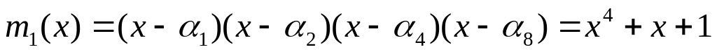 Для корня со степенью 3: m3(x) = (x – a3 ) (x – a6 ) (x – a9 ) (x – a12 ) = x4 + x3+ x2 + x1+1.