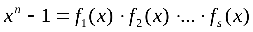 Следствие из теоремы 3. Порождающий полином циклического кода длины n можно найти, разложив полином на простые множители: