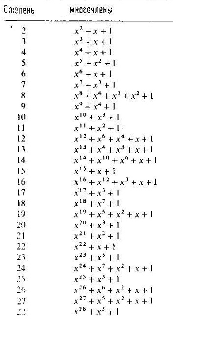 Приложение А. Таблица неприводимых полиномов над GF(2).