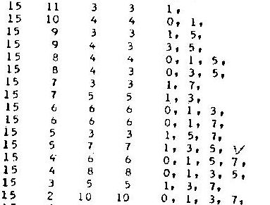 Рассмотрим каждый шаг более подробно на примере кода (15,5,7) . Для такого кода в таблице циклических кодов указаны следующие степени корней {1,3,5}.