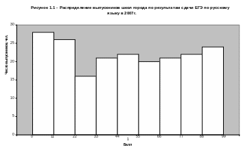 Таблица 1.2 - Распределение выпускников школ города по результатам сдачи ЕГЭ по русскому языку в 2007г.