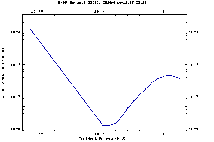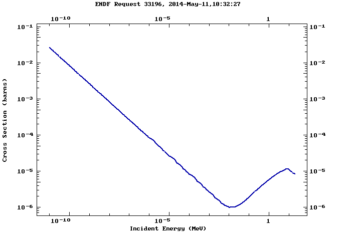 У Na самые большие сечения захвата в области тепловых нейтронов и примерно равны 102 – 103 барн, у остальных элементов в этой же области сечения меньше и примерно равны 10-2 – 1 барн. Резонансная область самая широкая у Bi и K и ее ширина составляет 10-3 – 10-1 МэВ, у Hg и Pb резонансная область уже, с шириной у Hg 10-3 – 10-2 МэВ; у Pb 10-1 – 1 МэВ. У Na резонансной области нет. У всех элементов в области быстрых нейтронов сечения захвата ниже по сравнению со значениями сечений в области тепловых нейтронов и равны 10-10 – 10-3 барн.