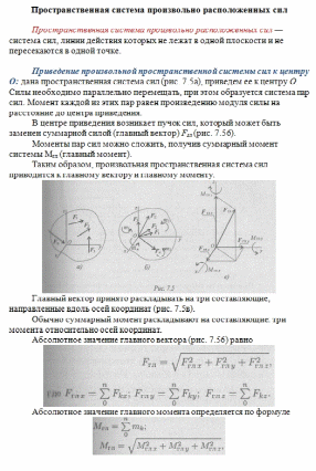 Пространственная система сходящихся сил эквивалентна равнодействующей, которая равна векторной сумме этих сил; линия действия равнодействующей проходит через точку пересечения линий действия составляющих сил.