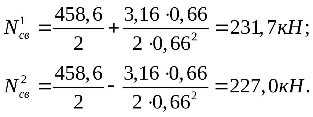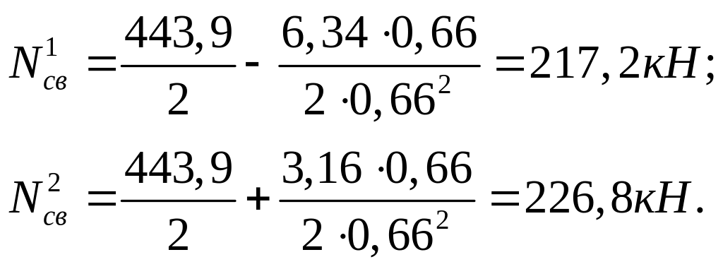 Все условия – Ncв<Fd/γc; Nсв>0 выполняются.