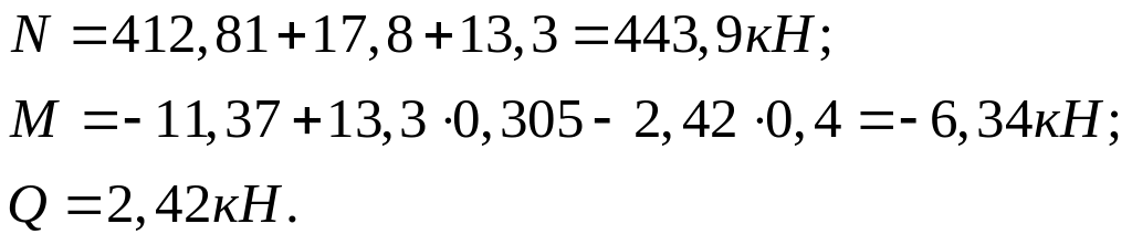 Где усилия определяются от нагрузок N и М, приложенных к обрезу ростверка.