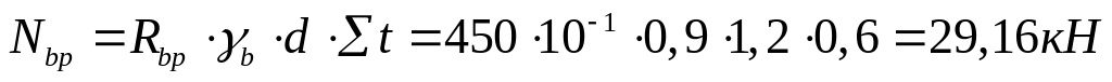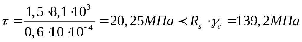 здесь γb=0,9 – коэффициент условий работы болтового соединения [табл.37*, 2]; Аb=1,13см2 – расчетная площадь сечения стержня болта [табл.62*, 2]; ns=1 – число расчетных срезов одного болта.