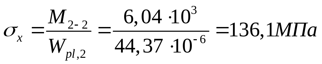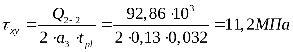 Проверка приведенных напряжений в плите в зоне действия анкерных болтов по сечению 2-2: