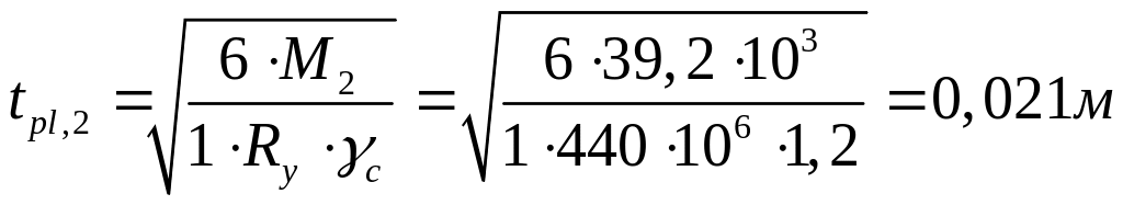 Толщина опорной плиты (сталь Ст345 при t>40 Ry=440МПа)