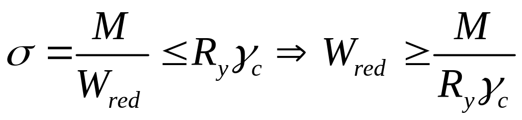 Номер прокатного профиля определяем из условия прочности по требуемому моменту сопротивления: