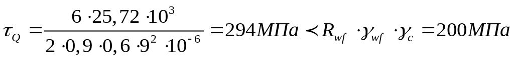 Проверим вертикальные швы kf=6мм крепления консоли на срез: