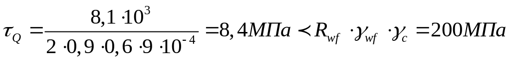 Проверка швов крепления планки к стенке балки консоли ( сварка – полуавтоматическая в среде углекислого газа; сварочная проволока Св-08Г2С); принимаем катет шва kf=5мм.