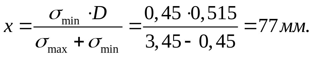 По формуле (130) определим положение нулевой точки на эпюре напряжений: