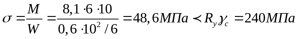 Проведем проверку по прочности, согласно п.5.24* [10]: