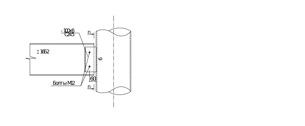 Крепление консоли к колонне осуществляем при помощи накладки и болтов нормальной точности (класс точности С) М12; класс прочности 4.6 [табл.57, 2]; Rbs=150 МПа [табл.58, 2]; Rbp=450 МПа при Run=370МПа для элементов из стали С245 [табл.59*, 2].