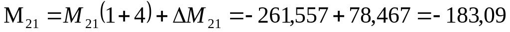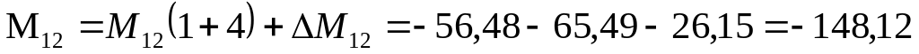 Опорный момент ригеля по грани крайней колонны по схеме загружения 1+4 и выровненной эпюре моментов:
