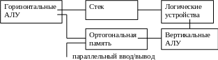 С горизонтальным способом работы – горизонтальные АЛУ. С вертикальным – вертикальные АЛУ. Ортогональная память – основа системы, пропускает как горизонтальную, так и вертикальную выборку. Особенности: стековый механизм управления. Основное достоинство заключается в учете особенностей обрабатываемых данных и возможности перестройки архитектуры. Система OMEN является прообразом систем ,которые могут подстраивать свою архитектуру под решаемую задачу.