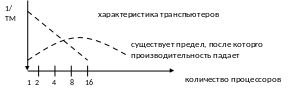 Кривая * – линейный рост производительности в зависимости от числа процессоров может быть достигнут только в истинно параллельной системе (например сетевой архитектуре).