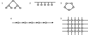 1.Дерево; 2. Шина; 3. Кольцо; 4. Решетка; 5. Конвейер; 6. Тороидальная матрица;