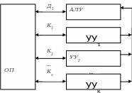 2. С помощью этой схемы можно организовать систему с интерпретируемыми процессорами. Периферийные процессоры, которые будут решать задачи определенного типа. Эти процессоры можно перепрограммировать для решения другого типа задач. Можно реализовать архитектуру МКМД – истинно мультипроцессорная система.