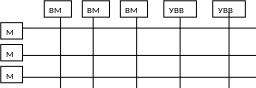 ВМ – вычислительный модуль; М – устройство внешней памяти; УВВ – устройство ввода-вывода. Достоинства: простота подключения устройств, легкость наращивания, низкая стоимость. Недостатки: большие задержки в обработке информации в случае увеличения числа модулей, так как сеанс взаимодействия каждого модуля с каждым монополизирует шину на все время обмена информацией. 1. Определение стандартного времени передачи информации между модулями(квант времени). 2. Квантование.