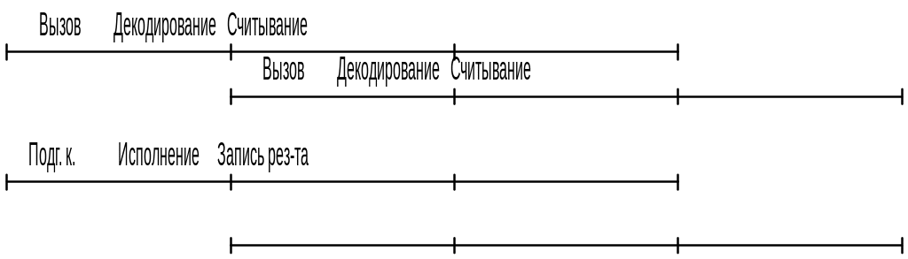1-й уровень параллелизма: во время исполнения – подготовка следующей команды, поэтому производительность определяется только временем исполнения команды.