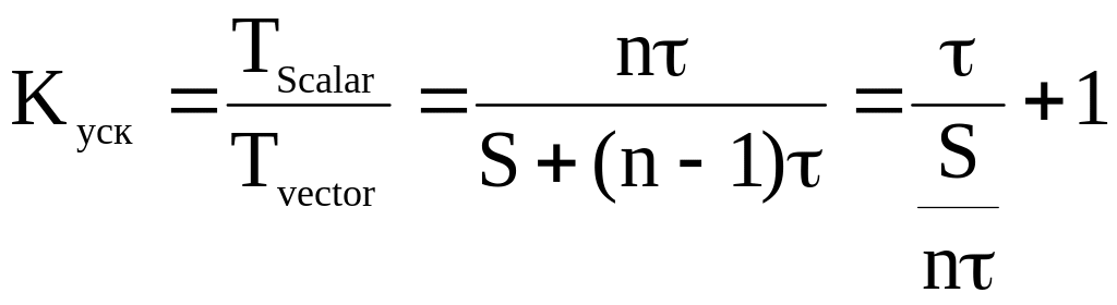 Производительность векторного процессора зависит от числа векторных операций, которые выполняются на этом процессоре. Чем больше векторных операций, тем выше производительность процессора. Формула для вычисления коэффициента снижения производительности: