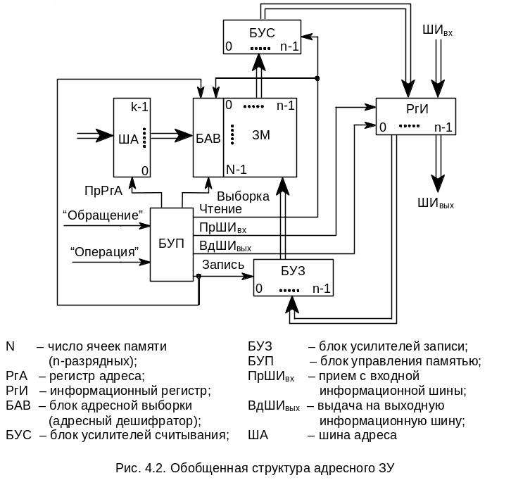На рис. 4.2 изображена обобщенная структура адресной памяти.