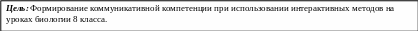 - замысел – разработать модель, в которой системообразующим фактором является развитие коммуникативной компетенции на уроках биологии учащихся 8 классов, и применить различные виды интерактивных методов на занятиях.
