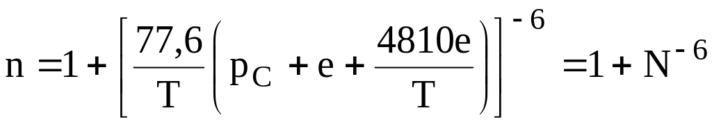 Коэффициент преломления n в тропосфере обычно определяется с помощью полуэмпирической формулы