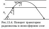 Из (13.21) следует, что радиус кривизны траектории радиолуча в области отражения