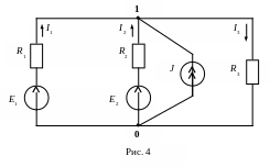 Метод двух узлов является частным случаем метода узловых потенциалов при числе узлов в схеме n = 2 (рис. 4).