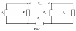 3)Удаляют из схемы выделенную ветвь, в оставшейся части схемы удаляют все источники (источники ЭДС E закорачивают, а ветви с источниками тока J удаляют из схемы), методом преобразования выполняют свертку пассивной схемы относительно точек подключения выделенной ветви и таким образом определяют Rвхаb.