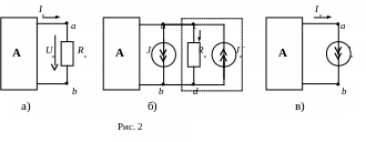 4) Составляют одну из эквивалентных схем замещения с генератором напряжения (рис. 4а) или с генератором тока (рис. 4б).