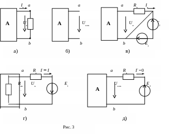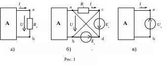 Для доказательства п. а) теоремы удалим из схемы выделенную ветвь и между точками ее подключения измерим (рассчитаем) напряжение холостого хода Uxxab = a-b (рис. 3б).