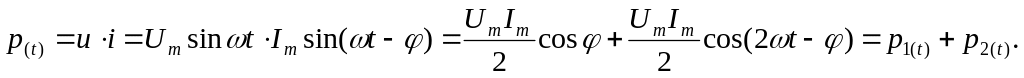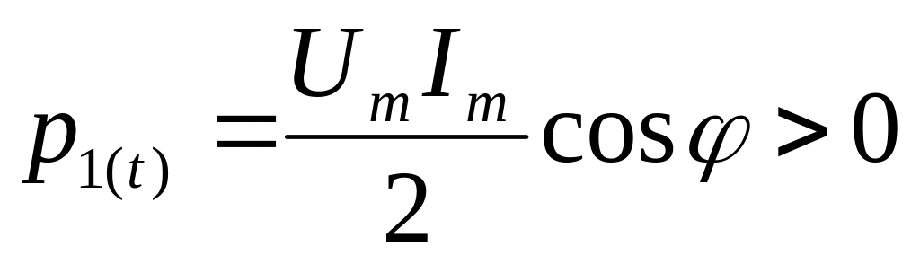 Мгновенная мощность, как функция времени, состоит из двух слагаемых: