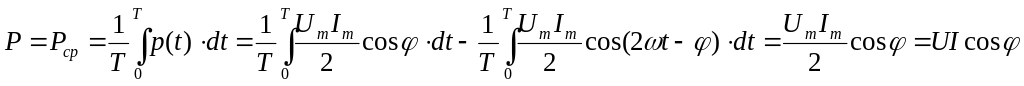 Количество энергии, которое преобразуется в приемнике в другие виды в единицу времени, называется активной мощностью P. Математически активная мощность может быть получена как среднее значение мгновенной мощности за период: