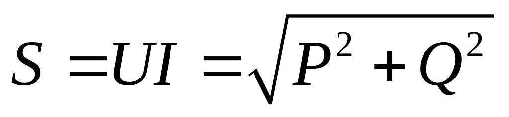 В технике используется понятие полной мощности S, которая не имеет физического смысла и определяется по формуле: