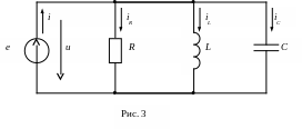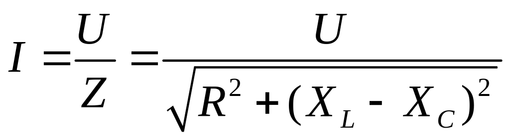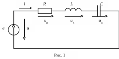 Пусть в заданной схеме с последовательным соединением элементов R, L и C (рис. 1) протекает переменный ток
