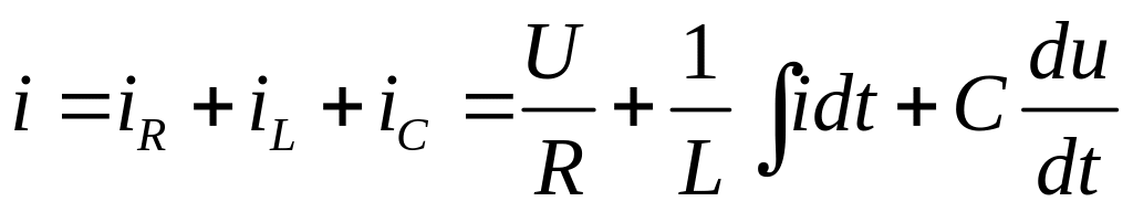 По 1-му закону Кирхгофа для мгновенных значений функций получаем уравнение в дифференциальной форме: