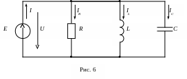 Резонанс в цепи с параллельным соединением источника энергии и реактивных элементов L и C получил название резонанса токов. Простейшая схема такой цепи показана на рис.6.