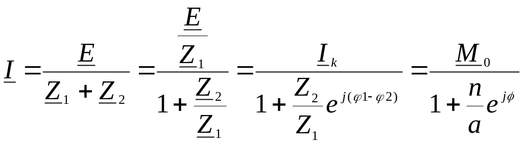 где М0 = Iк= E/Z1 – ток короткого замыкания, соответствует вектору-хорде дуги окружности, Z2 = n = var – переменный параметр, Z1= a = const - постоянный коэффициент, 2 - 1= = const – постоянный угол.
