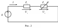 Рассмотрим схему цепи, состоящую из последовательно включенных источника ЭДС E и пассивных элементов Z1, и Z2 (рис 2). Задано, что E = Eej=const, Z1 = Z1ej1 = const, Z2 = Z2ej2, где 2=const, a Z2 = var = 0÷ - переменный параметр.