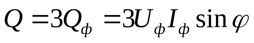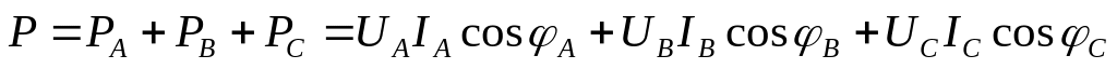 Активная и реактивная мощности трехфазной цепи, как для любой сложной цепи, равны суммам соответствующих мощностей отдельных фаз: