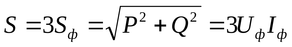 В приведенных формулах для мощностей трехфазной цепи подразумеваются линейные значения величин U и I, но индексы при их обозначениях не ставятся.