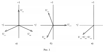 На рис. 1 представлены симметричные составляющие некоторой несимметричной трехфазной системы напряжений UA,UB,UC.